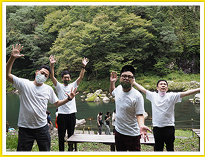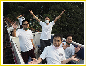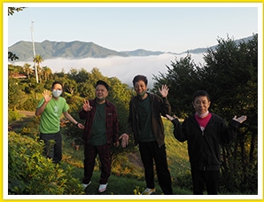 早朝の絶景ポイントで大感動する一同。