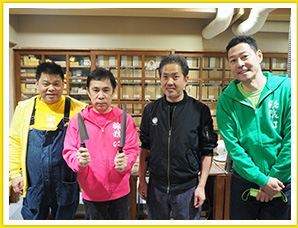 マグロ解体に不可欠な包丁を買いに向かう一行。