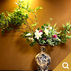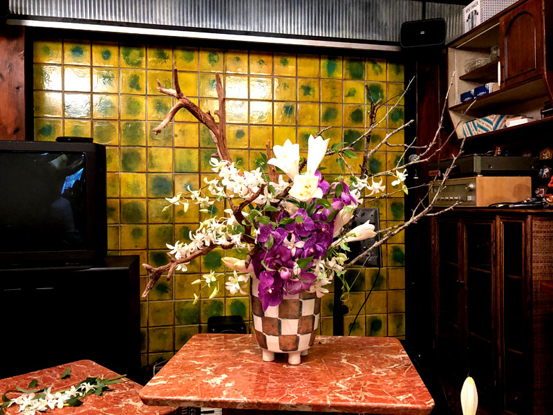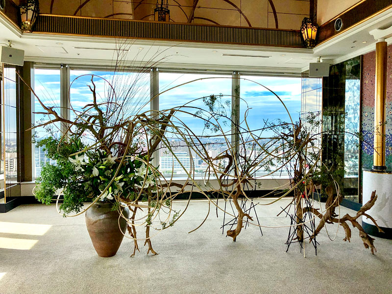 月島流が生け花を担当しているラウンジで、いわば市松の土俵、息がかかった場所。