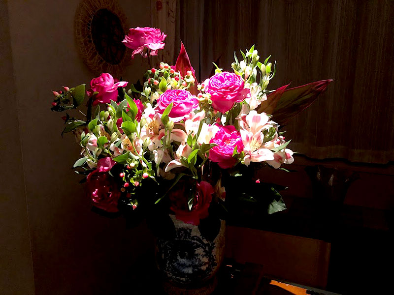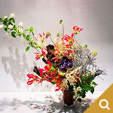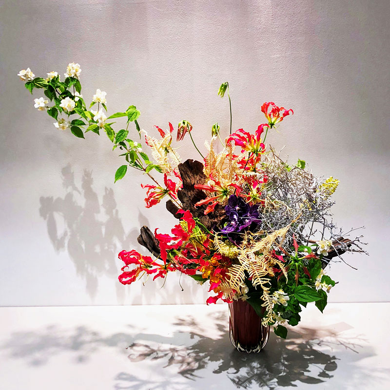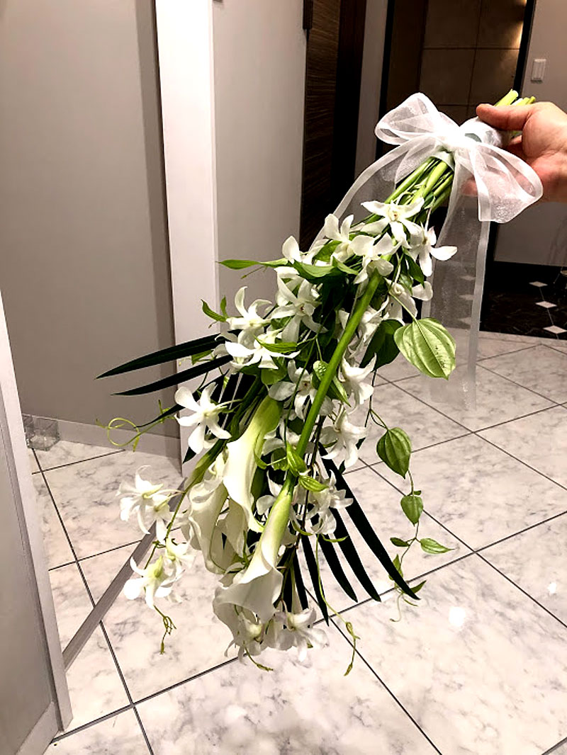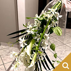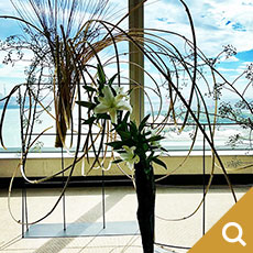 ななを傷つけたくない龍一のぎりぎりの「正義感」を白い百合で表しました。(大谷美香・草月流)