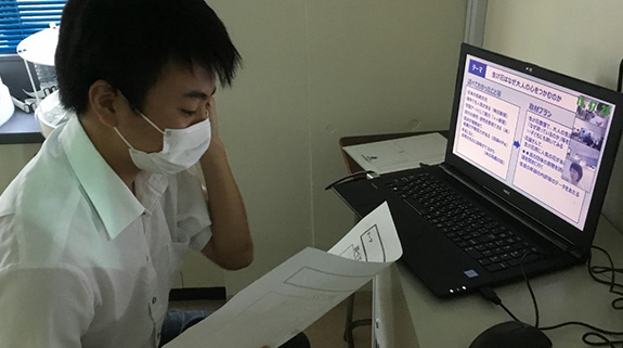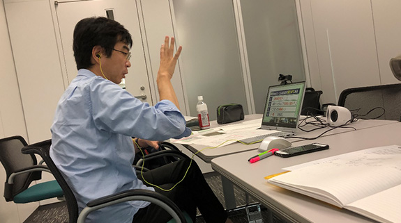 しかし、この「情報のタネの見つけ方」は、2時間分を要する長めの設定。さらに、動画を見たり、グループワークを行ったりと、様々なプログラムを盛り込んでいるため、オンラインで果たしてどこまで可能なのか、事前の打ち合わせで先生からは、「それならもう1台PCを、教室のこのあたりに置けば、授業を受けている生徒の様子がそちらからも見えますよね?」「Wi-Fiは飛んでいるので、途中で動画を見ることも可能です」など助言をいただき、こちらからも「音がハウリングしないように、こちらのPCのマイクは基本ミュートで」など、これまでの対面授業では気にすることのなかった様々な細かい点を詰めていきました。