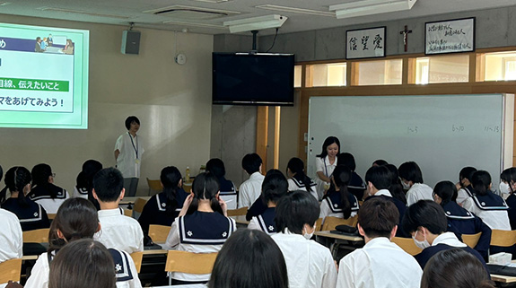 この授業は、与えられた「課題」から自分たちで「テーマ」を見つけ、そのテーマについて深掘りし、最終的にどのように発表すれば人の心に届けることができるか、そのコツについて、我々の仕事とリンクさせながらお伝えする、というものです。
