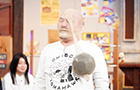→ボールの入ったパンストを被り、5m先のドラに当てることができれば成功!