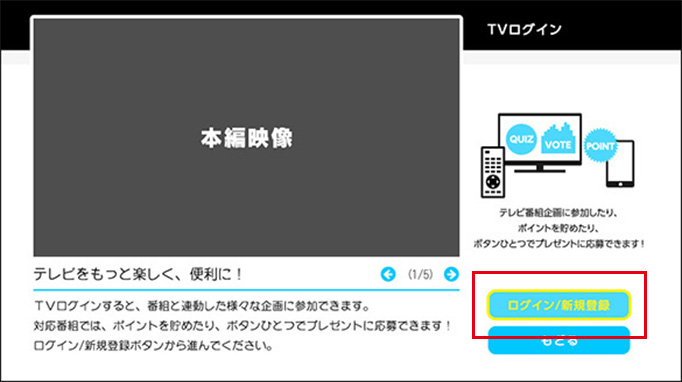 ②ゲーム画面の「ランキングに参加する」か「利用設定」ボタンを押すと、「TVログイン」画面に遷移します。
