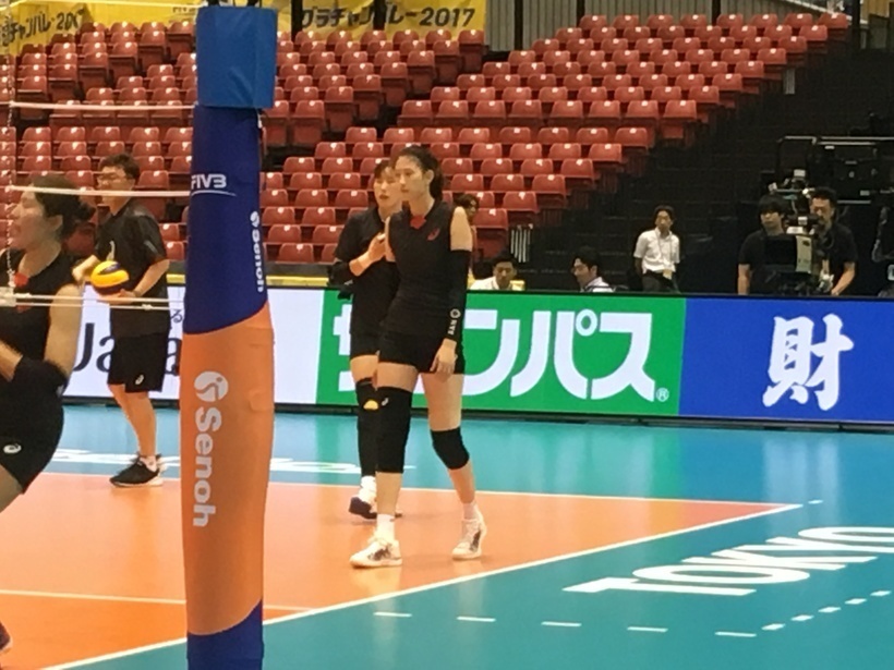 あす5日初戦で日本と対戦する韓国も公式練習を行い、本番さながらの熱気が入った練習を繰り広げた。 実戦形式では選手たちが大きな声で指示を出し合い、スパイク、ブロックを決めた選手の雄たけびも飛び交うなど早くも気合い全開モードだった。 主将のミドルブロッカー、キム・スジはセッターと細かく打ち合わせ、必勝態勢。得点源として期待のかかるイ・ジェヨンはバックアタックを左右に打ち分け、日本戦に備えていた。