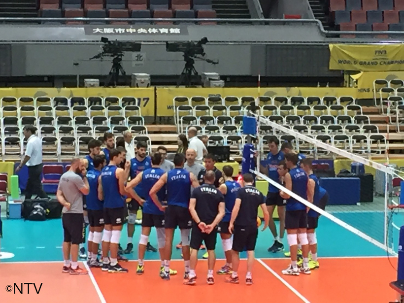 イタリア男子代表は14日、大阪の大阪市中央体育館で公式練習を行った。あす15日(金)の第3戦日本戦に備え、試合が行われるメーンコートで約1時間、汗を流した。