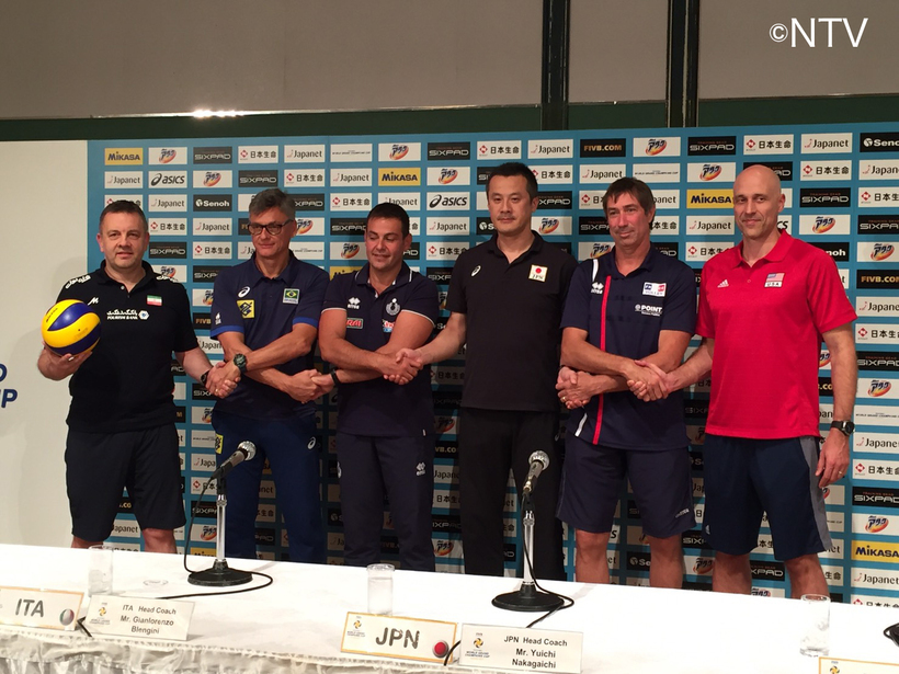 15日(金)からスタートする男子のワールドグランドチャンピオンズカップ2017大阪ラウンドの監督会見が14日、大阪・港区のホテルで行われ、日本の中垣内祐一監督ほか、各国の代表監督が顔をそろえた。