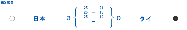 明日はD組一位の韓国と対戦します。日本 25-16 タイ 25-15 25-20 -