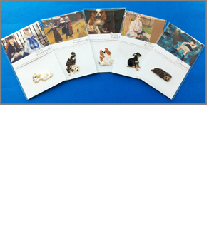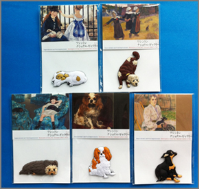 作品の中で、一際存在感を放っているこの犬たちをピンバッジにしました。