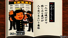 100点のテストを得意げに教授に見せることは ことは 『今日漢字の抜き打ちテストで満点とっちゃった』 教 授 『それはすごいね』 ことは 『突然のテストだったから、点数のいい子も悪い子もいて、 悲喜こもごもだったんだよ』