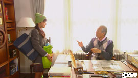 ことは『ただいま!』 手には大量のカエルグッズ。 慌ててクマのぬいぐるみを隠す教授・・・ 教 授『どうしたんだそれは・・』 ことは『「カエルグッズを集めてる」って言ったら クラスのみんなが誕生日プレゼントにくれたの!』 ことは、手で泡だてる動きをしながら、 ことは『濡れ手で泡だよ』