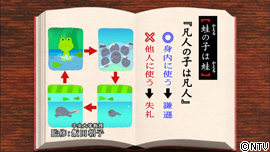 ことは『わ~!ホントだ!おじいちゃん、なんで分かったの?』 突然教授がくしゃみ!『蛙の子は蛙』の使い方、なぜ間違いなのでしょうか? |