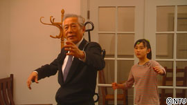 姿見の前で社交ダンスの練習をしている教授 ことは『社交ダンスの練習?気合入ってるね!』 教 授『明日は待ちに待ったダンス同好会の発表会だからね。 う~ん、待ち遠しい!!』 ことは『もう、おじいちゃんたら、浮足立っちゃって!』