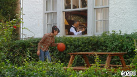 書斎で新聞を読んでいる教授 ことはは庭でバスケットボールのドリブルの練習中 教 授『これから週末にかけて、天気は下り坂らしいね…』 ことは『えー!来週は球技大会があって、 楽しみにしていたのにー!』 教 授『心配はいらないよ。その頃にはまた晴れてくるみたいだからね』 ことは『そっか、来週は天気が上り坂なんだね!』