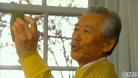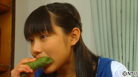 教授、書斎で俳句を詠んでいる。傍らには柏餅。 教授が突然くしゃみ! |