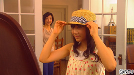 ことはが出かける準備をしていると、いろはがそれに気づいて入ってくる いろは「あら、どこかでかけるの?」 ことは「夏休みも終わりだから、アヤちゃん達と遊びに行ってくる」 いろは、ことはの帽子が気になって いろは「ちょっとまって!(帽子を斜めにして)こうすると可愛いわよ」 ことは「ほんとだ!こうやって、あみだにかぶるとオシャレだね!」