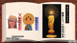 「あみだにかぶる」の語源は阿弥陀如来。 その昔、笠を頭の後ろにずらして被った様子が、 正面から見ると阿弥陀如来の背後の光に見える事から、 この被り方を「阿弥陀かぶり」と呼ぶようになったのです。 横に傾けて被る事は「あみだにかぶる」とは言いません。
