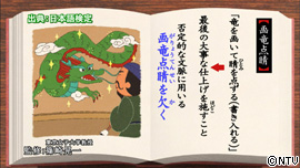 「画竜点睛」は「ガリュウ」ではなく、「ガリョウ」と読みます。 「りゅう」と発音するのは、日本独自の漢字の読み方で、 中国から伝わってきた、この四文字熟語を発音する時は、 「ガリョウテンセイ」と言いましょう。 画竜点睛とは「竜を画いて睛(ひとみ)を書き入れる」ということで、 最後の大事な仕上げを施すことを指し、 一般的には「画竜点睛を欠く」の形で否定的な文脈に用いる言葉です。