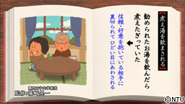 ことはが、書斎で本を読んでいると、 いろはがスーツケースを持って帰ってくる ことは「お帰り!大阪への出張どうだった?」 いろは「仕事は上手くいったんだけど、 たまたま帰りに乗ったタクシーの運転手がひどくって!」 ことは「なにがあったの?」 いろは「道を間違えるわ、違う場所に着いちゃうわで、 行きの倍かかっちゃった」 ことは「そっか、タクシーの運転手に煮え湯を飲まされたんだね」
