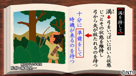 「満を持して」の「満」とは、 弓をいっぱいに引いた状態のこと。 「じっとその状態を維持し、弓から矢が放たれるのを待つ」ように、 「十分に準備をして、時機の来るのを待つ」ことを表します。 単にタイミングがいいだけでなく、「準備をしている」ことが重要なのです。