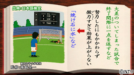 「のれんに腕押し」とは、垂れ下がったのれんを押しても 手ごたえがないように、こちらからの働きかけに対して、 相手側に変化や動きの見られない状態のたとえ。 大差のついた試合で、終了間際に一点返すなど、 努力したにも関わらず、微力過ぎて役に立たないことを言うときは、 「焼け石に水」などを使いましょう。