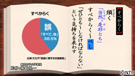 「すべからく」は、漢字では『須く』と書き、 「当然、是非とも」という意味です。 多くは下に「べし」を伴って、「ぜひともしなければならない」 という気持ちを表します。 文化庁が行った「国語に関する世論調査」では、間違った意味の 「すべて、皆」を使う人が、4割近くもいるという結果が出ています。