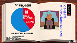 「やおら」とは、人や動物がゆっくりと動作を始めるさまを表します。 文化庁の調査では、 本来の意味とは逆の「急に」「いきなり」と回答した人が、 4割以上という結果が出ています。