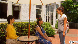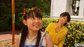 庭のテーブルで、いろはと、ことはが本を読んでいると、 後ろから忍び寄る人影 レイラ「Here's a present for you!」 レイラ、ことはの頭に花輪をかぶせる。 ことは「わ!びっくりした!」 いろは「あら、かわいいわね」 レイラ「この前、公園で小さい子に作ってあげたら、 すごく喜んでくれたんです」 ことは「へー、レイラったら、とってもハートフルだね!」 レイラ「ことは酷い!せっかく作ってきたのに!」 突然怒り出すレイラ