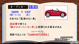 「オープンカー」は「open(開いている)」と「car(車)」を合わせてできた和製語で、日本では「屋根のない車」という意味で使われています。 |