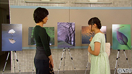 大学の廊下に飾ってある写真を見つめることは。 そこへ、いろはが小走りでやってくる。 いろは「ごめーん、待った?」 ことは「うん、もうお腹ペコペコ!」 いろは「ところで、何してたの?」 ことは「この、写真見てたんだけど、全部学生の作品だよね?」 いろは「ええ、プロも顔負けでしょ」 ことは「うん、とっても素敵!私、高校では写真部の部長をやってるけど、 池の中の蛙だったよ…」
