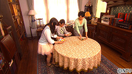 書斎に出前の冷やし中華を持った、いろは、ことは、文之介が入ってくる