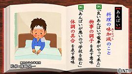 ここでいう『あんばい』とは、料理の味加減のこと。 |