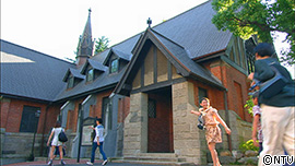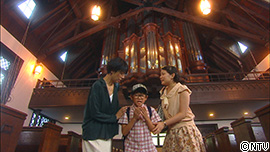 ことはが、いろはと、文之介をつれてチャペルにやってくる