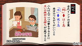 庭で、いろはと、ことはと、文之介が、餅を並べるトレイを 文之介「(…ん?阿吽の呼吸??)ヘックション!」 『阿吽の呼吸』とは、どういう意味なのでしょうか? |