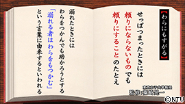 「わらにもすがる」とは、せっぱつまったときには、 |