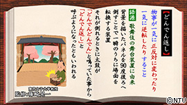 「どんでん返し」とは、 物事が一気に正反対に変わったり、一気に逆転したりすること。 語源は歌舞伎の舞台装置に由来します。 これは、背景を描いたパネルを90度後ろへ倒すことで、 一瞬のうちに場面を転換する装置。 それが倒れるときに、太鼓が「どんでんどんでん」と鳴っていた事から 「どんでん返し」と呼ぶようになったといわれています。