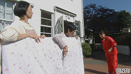 庭で、いろはと文之介が布団を干していると、 ことはが足を引きずって帰ってくる。 文之介「ことはおねえちゃん、どうしたの!?」 ことは「最近運動不足だったから、 ちょっとジョギングしてたら足つっちゃって…」 いろは「もしかして、準備運動しなかったんでしょ」 ことは「…うん」 いろは「もう、自業自得ね!」