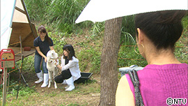 軽井沢を、いろは、ことは、文之介が歩いている。