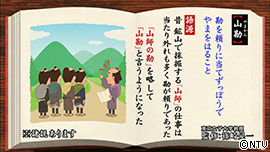「山勘」とは、 勘をたよりに、当てずっぽうでやまをはること。 語源には諸説ありますが、 昔、鉱山で採掘する「山師」の仕事は、当たり外れも多く 勘が頼りであったことから、「山師の勘」を略して「山勘」と 言うようになったともいわれています。
