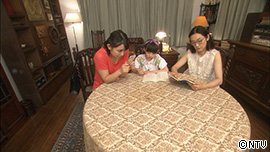 書斎で、いろはと、かるたが本を読んでいる横で、