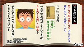 かるた「(…ん?目を皿にする?)ヘックション!」 『目を皿にする』とは、どういう意味なのでしょうか? |