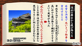 かるた「(…ん?清水の舞台から飛び降りる?)ヘックション!」 『清水の舞台から飛び降りる』とは、どういう意味なのでしょうか? |