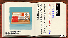 「すし詰め」とは、 多くの人や物が、隙間なくいっぱいに詰まっている様子。 「おすし」を折り箱などに詰める時、崩れないように 隙間なくびっしりと並べることに由来します。