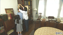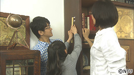 書斎の本棚の前で、いろは、かるたが、 文之介の身長を測っている かるた「あ、お兄ちゃん1年で4センチも伸びてる!」 文之介「ホント!?いつの間に・・・」 いろは「自分じゃ気づかないうちに成長しているものよ。 このままだとあっという間に大人ね」 文之介「いやいや、僕なんてまだまだ青二才ですよ」