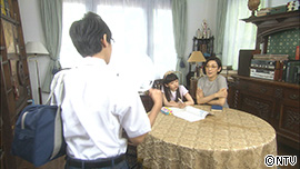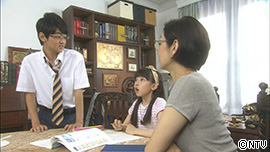 書斎で、いろはが本を読んでいる隣で、かるたが宿題をしていると、文之介が汗だくで学校から帰ってくる。
