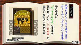 書斎で、ことは、文之介、かるたが年賀状を見ていると、 いろはが入ってくる。 いろは「さ、ご飯にするから片付けて」 文之介「いろは叔母さん、もしかして今日も…」 いろは「ええ、お餅よ」 ことは、うんざりして ことは「えーまた!お正月からしこたま食べてるからなぁ…」