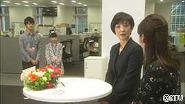 ニューススタジオで、生放送中のいろは。 後ろで見ている文之介と、かるた。 キャスター「彼の発言には注目していきたいですね」 いろは「はい。イギリス経済の風雲児となることは 間違いありません」 キャスター「それではまた次回」