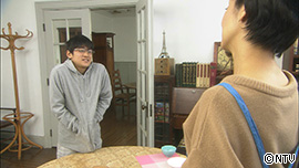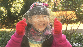 書斎で、いろはが朝食の準備をしていると、 文之介が起きてくる。 文之介「おはよー、今日すごく寒いね」 いろは「そうね」 そこへ、窓の外から元気のいいかるたの声 かるた「いろは叔母さーん!見てー!」 窓を開けると、庭でかるたが丸い氷を持っている いろは「わ、氷!?」 文之介「冬将軍が来たんだね」