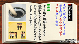 「胡麻をする」とは、「人に気に入られるように振る舞って、 |