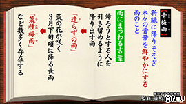 「青梅雨」とは、新緑に降りそそぎ、 木々の青葉を鮮やかにして降る雨のこと。 他にも「雨にまつわる言葉」は、 「帰ろうとする人を引き留めるように降り出す雨」を表す 「遣(や)らずの雨」や、 「菜の花が咲く3月下旬頃に降る長雨」を表す 「菜種(なたね)梅雨」など、数多く存在します。